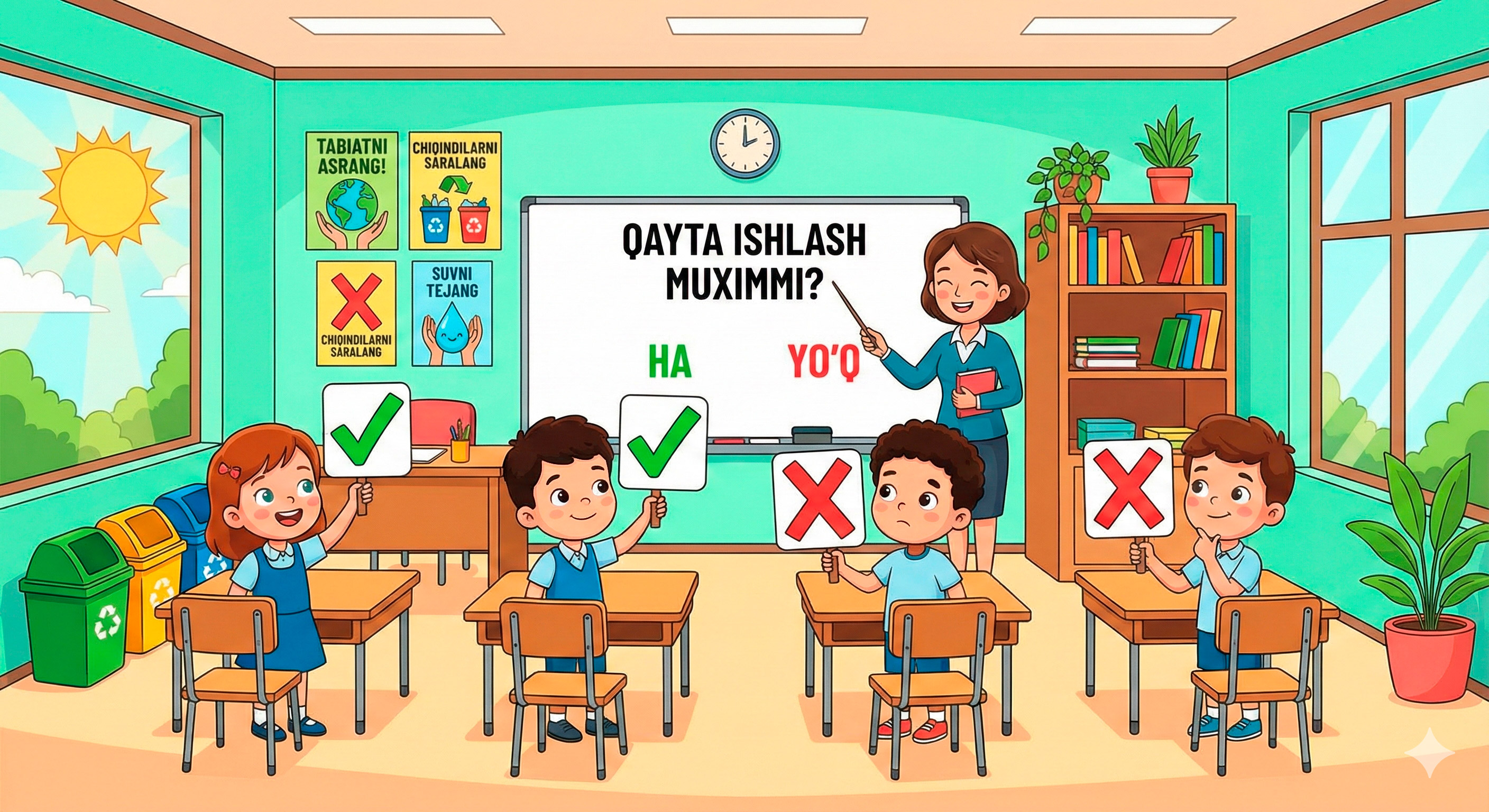 Bu uchta oddiy qoida bolalarni ekologik mas’uliyatga o‘rgatadi. Ular chiqindilarni oddiy ko‘rinishda saralay oladi va “plastikni shunchaki tashlab yubormaslik” tushunchasini shakllantiradi.